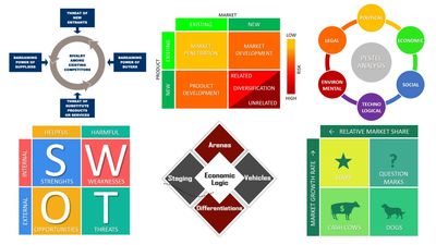 Given the complexity of IT topics (as an example a larger insurance companies can have thousands IT systems, hundreds of IT staff members distributed worldwide and hundreds IT suppliers), we have numerous IT strategy frameworks to facilitate development of IT strategy such as: